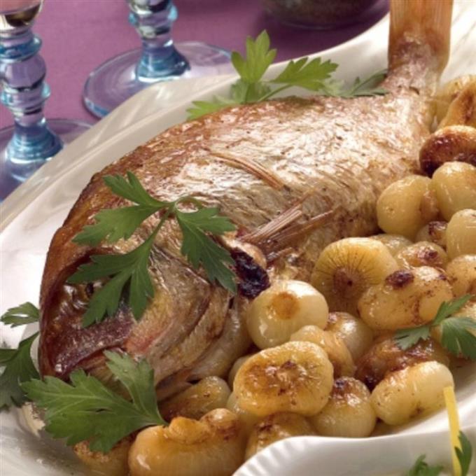 Για το τραπέζι των Φώτων - Φαγκρί στο φούρνο με ούζο και κρεμμύδια