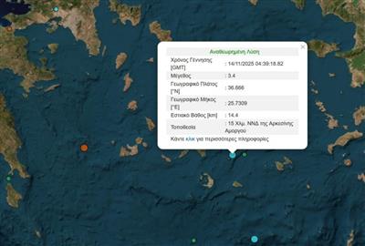Το εστιακό βάθος του σεισμού, σύμφωνα με την εκτίμηση του Γεωδυναμικού, υπολογίζεται στα 14,4 χλμ