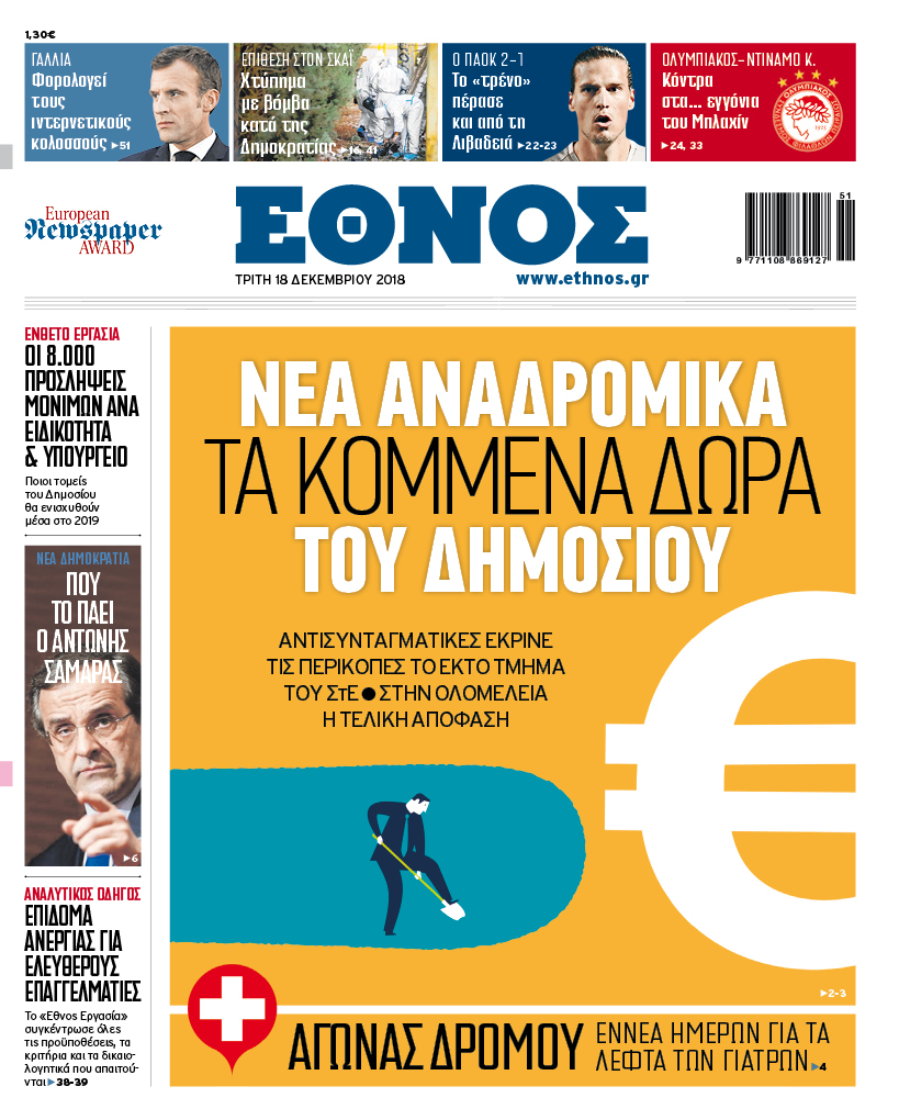 Διαβάστε στο «Έθνος» που κυκλοφορεί την Τρίτη 18/12/2018