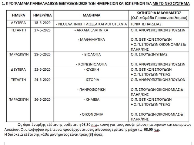 Ο μαραθώνιος θα ξεκινήσει για τους μαθητές των Γενικών Λυκείων με το μάθημα της Νεοελληνικής Γλώσσας και Λογοτεχνίας. Θα ακολουθήσουν την Τρίτη οι υποψήφιοι των ΕΠΑΛ με τα Νέα Ελληνικά. Για το ακαδημαϊκό έτος 2020-2021 συνολικά θα εισαχθούν στις σχολές, στα τμήματα και στις εισαγωγικές κατευθύνσεις τμημάτων της τριτοβάθμιας εκπαίδευσης 77.970 υποψήφιοι.