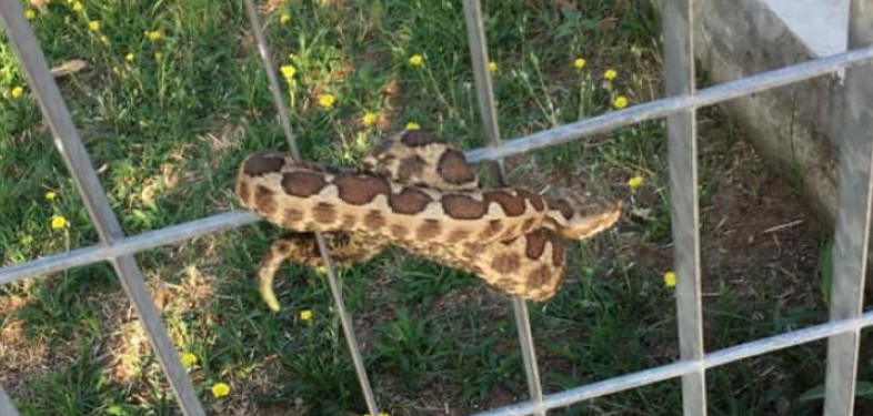Αυτή τη φορά η κλήση έγινε έγκαιρα, με αποτέλεσμα η οχιά να εντοπιστεί από τον εθελοντή της Δράσης για την Άγρια Ζωή, Στέλιο Γερονυμάκη και να απομακρυνθεί από την περιοχή.
