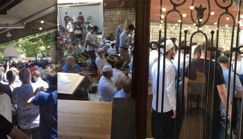 Έξω από τον Ιερό Ναό είχαν συγκεντρωθεί μέλη θρησκευτικών σωματείων και άλλων οργανώσεων, διαδηλώνοντας την αντίθεσή τους στη μετατροπή, μετά από 86 χρόνια, της Αγίας Σοφίας σε τζαμί. Φωνάζοντας συνθήματα υπέρ της διατήρησης του μουσειακού χαρακτήρα της Αγίας Σοφίας κ.ά, οι διαδηλωτές κατευθύνθηκαν προς το Τουρκικό Προξενείο επί της οδού Αγίου Δημητρίου, όπου αστυνομικές δυνάμεις έστησαν φραγμό και ανέκοψαν την πορεία τους. Αφού έμειναν στο σημείο, συνεχίζοντας να φωνάζουν συνθήματα, επέστρεψαν στο σημείο της αφετηρίας και διαλύθηκαν.
