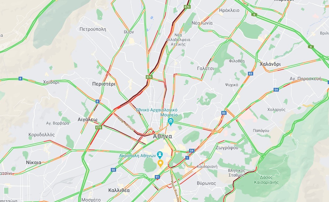 Το σύστημα του Κέντρου κατέγραψε συμφόρηση ακόμα και σε σημεία που τις ώρες αιχμής, υπό κανονικές συνθήκες, τα οχήματα κινούνται με σχετική άνεση. Πρόκειται για τη Χαμοστέρνας από την Πειραιώς μέχρι τη λεωφόρο Συγγρού, τη λεωφόρο Κωνσταντινουπόλεως και την Ιερά Οδό σε όλο της το μήκος.