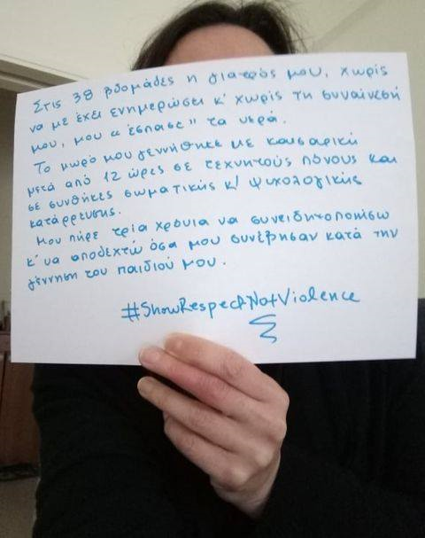 Το ένα είναι το κομμάτι της φυσικής βίας, όπως χαστούκι που συνοδευόταν από άσεμνες εκφράσεις («Σκάσε μη φωνάζεις τόσο»), τη στιγμή των οδυνών της γυναίκας. Αυτά τα περιστατικά μάλιστα γίνονται εντονότερα όταν η γυναίκα είναι μετανάστης και δεν ομιλεί καθόλου ελληνικά. Σπανιότερα τα βιώνουν Ελληνίδες. Το άλλο κομμάτι, της λεκτικής βίας ή του ψυχολογικού εξαναγκασμού βρίσκει τους επαγγελματίες υγείας να λένε στις επιτόκους «Δε σκέφτεσαι το μωρό σου;», «Θες να πάθει κάτι το παιδί σου;» ή «Δε θες να κάνεις επισκληρίδιο εσύ; Είσαι απολίτιστη;»