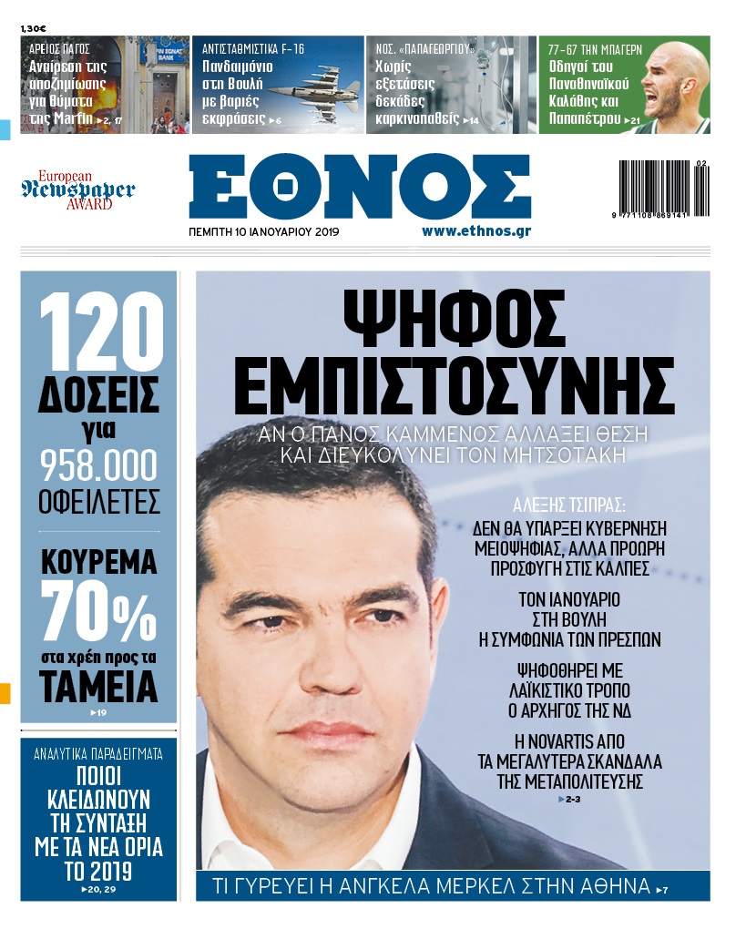 Διαβάστε στο «Έθνος» που κυκλοφορεί την Πέμπτη 10/1/2019