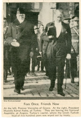 Ελευθέριος Βενιζέλος και Μουσταφά Κεμάλ στην Άγκυρα το 1930. Δωρεά Σοφοκλή Βενιζέλου (Ιστορικά Αρχεία Μουσείου Μπενάκη)