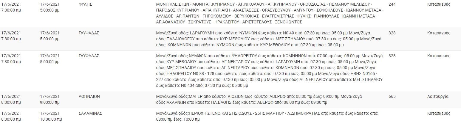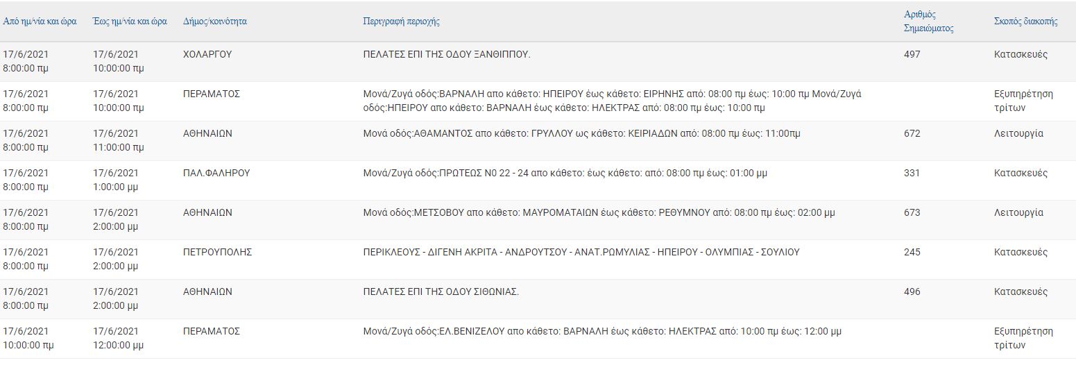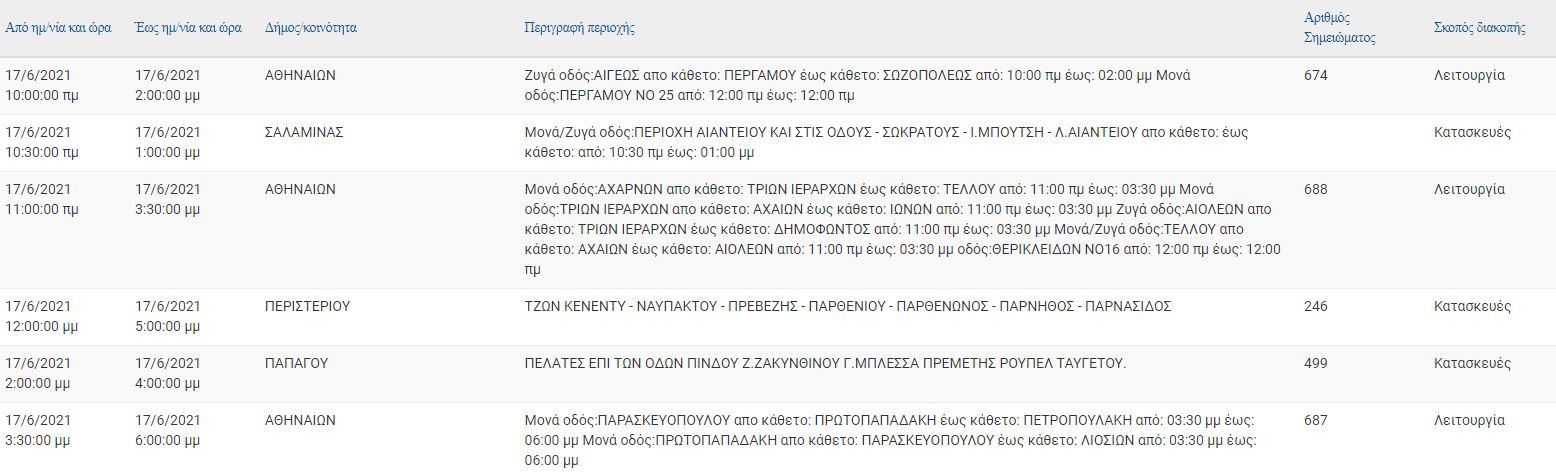 Αναλυτικά οι πίνακες με τις περιοχές της Αττικής και τις ώρες που θα σημειωθεί διακοπή ρεύματος: