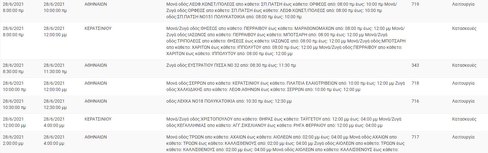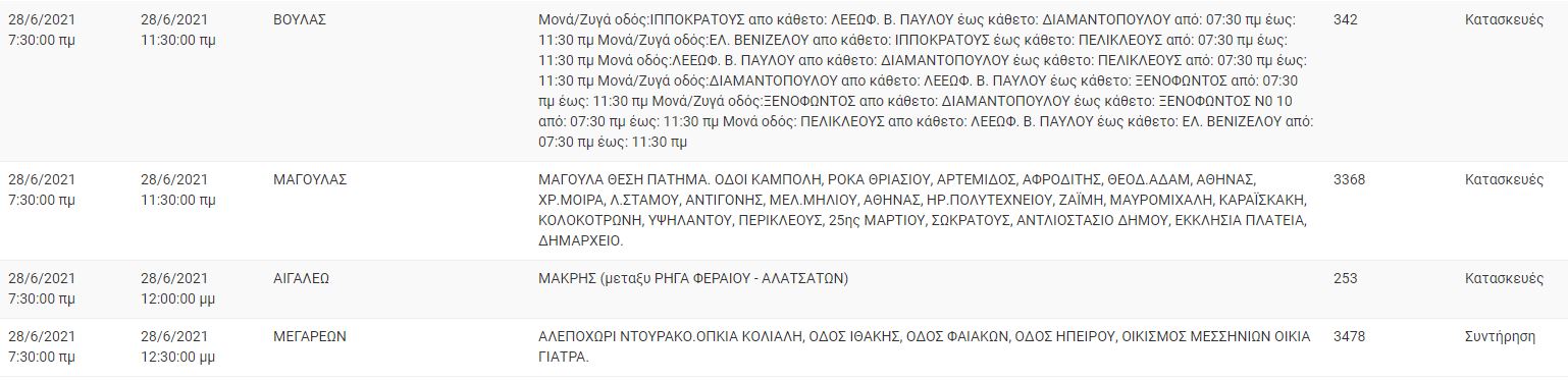 Αναλυτικά ο πίνακας με τις περιοχές της Αττικής και τις ώρες που θα σημειωθεί διακοπή ρεύματος: