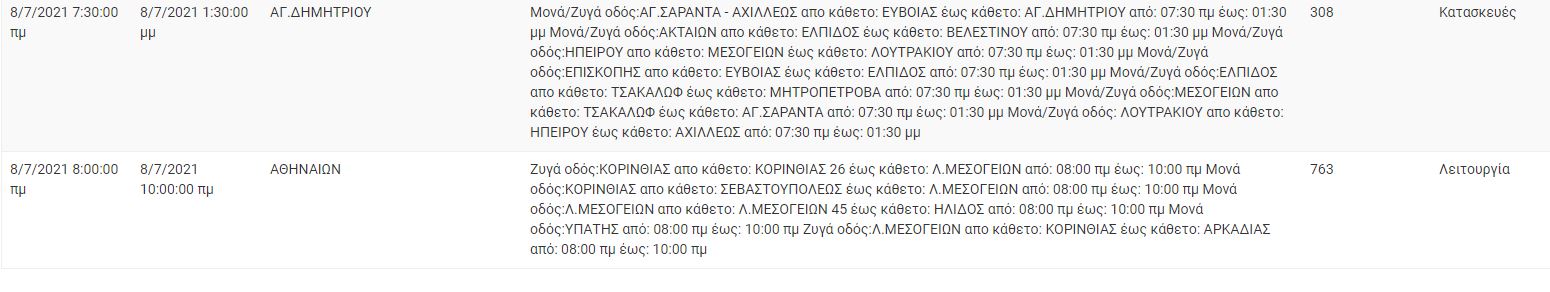 Αναλυτικά οι πίνακες με τις περιοχές της Αττικής και τις ώρες που θα σημειωθεί διακοπή ρεύματος:
