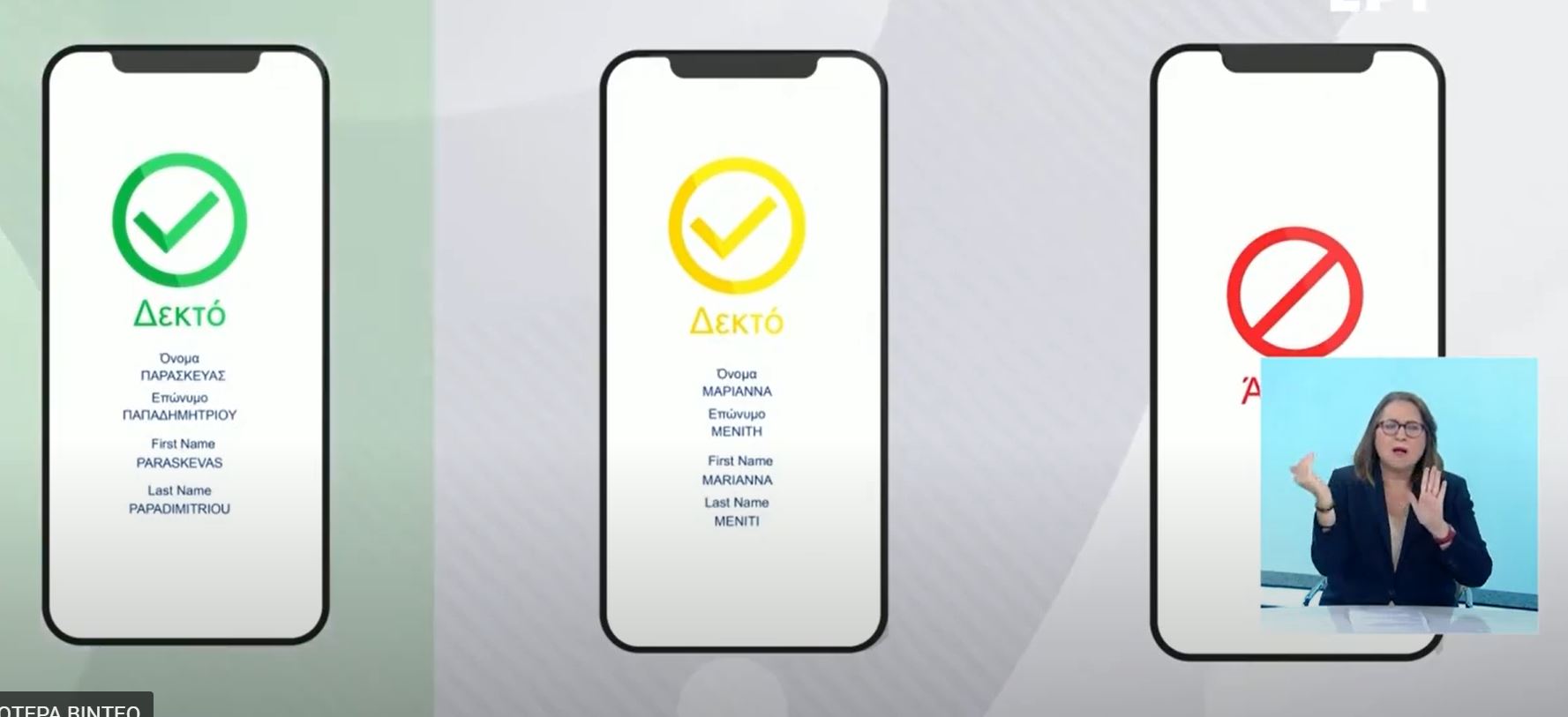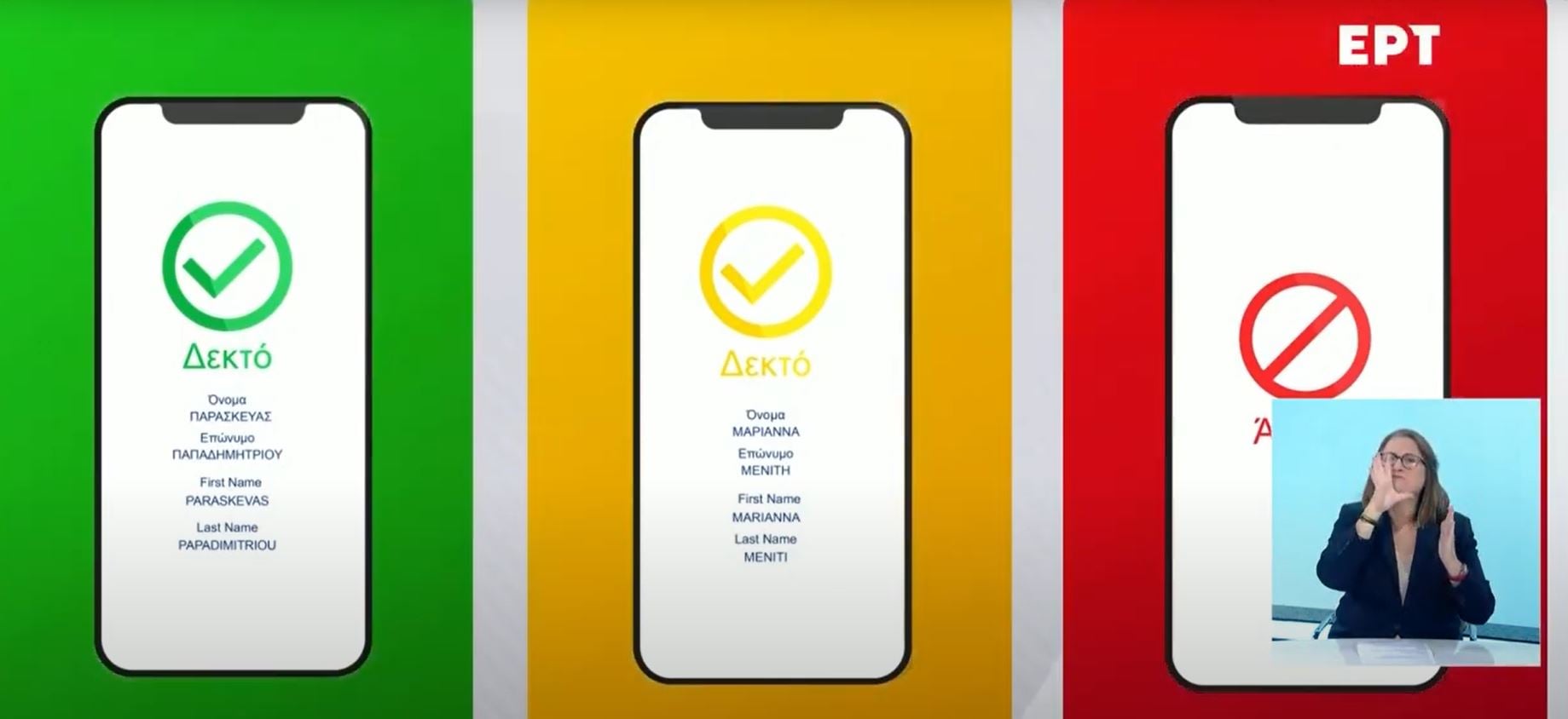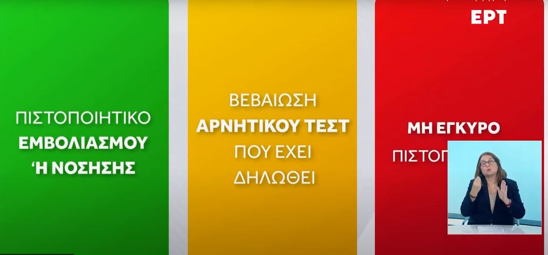 - Κίτρινο – σημαίνει ότι ο κάτοχος του πιστοποιητικού έχει αρνητικό τεστ (rapid ή PCR)