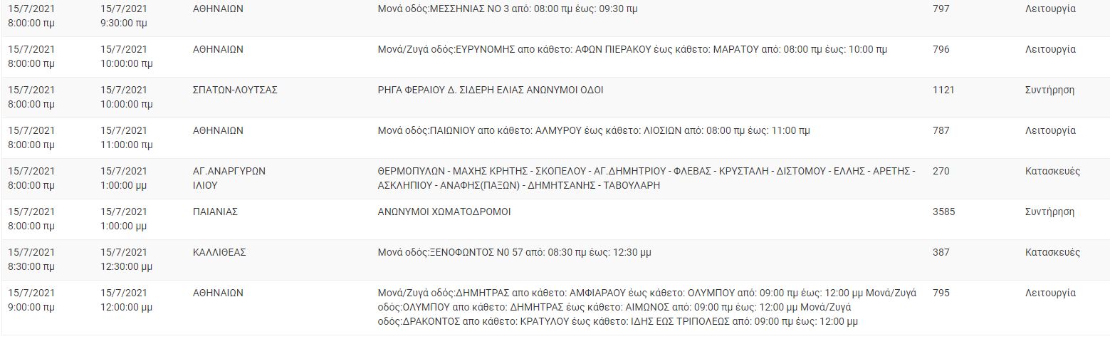 Αναλυτικά οι πίνακες με τις περιοχές της Αττικής και τις ώρες που θα σημειωθεί διακοπή ρεύματος: