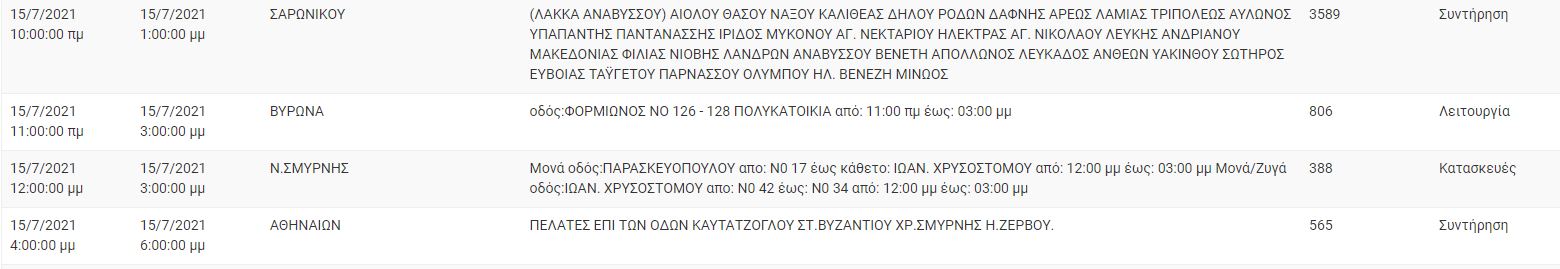 ΔΕΔΔΗΕ: Διακοπή ρεύματος σε Κέντρο Αθήνας, Νέα Σμύρνη, Καλλιθέα, Παιανία
