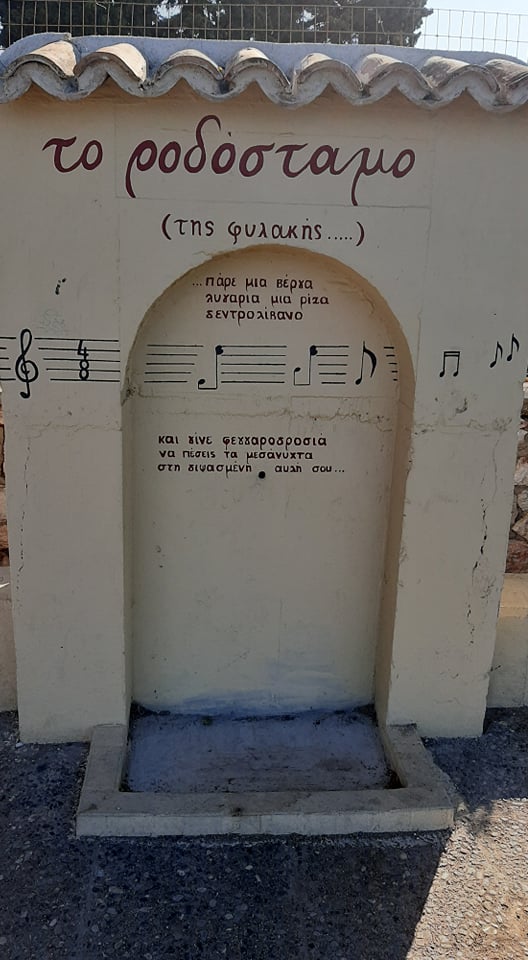 Μάλιστα αφιερωμένη στη φιλία των Χιώτη - Θεοδωράκη είναι και η περίφημη βρύση με το όνομα «Ροδόσταμο» που βρίσκεται στον προαύλιο χώρο των φυλακών και τη συνοδεύει ο δικός της θρύλος.