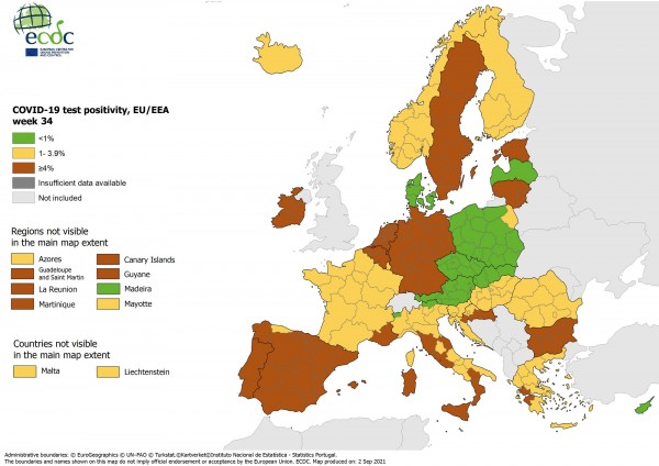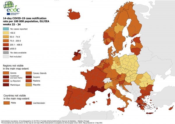 Την επιδημιολογική επιβάρυνση της Ελλάδας λόγω του κορονοϊού επιβεβαιώνουν οι επικαιροποιημένοι χάρτες του Ευρωπαϊκού Κέντρου Πρόληψης και Ελέγχου Νόσων (ECDC).