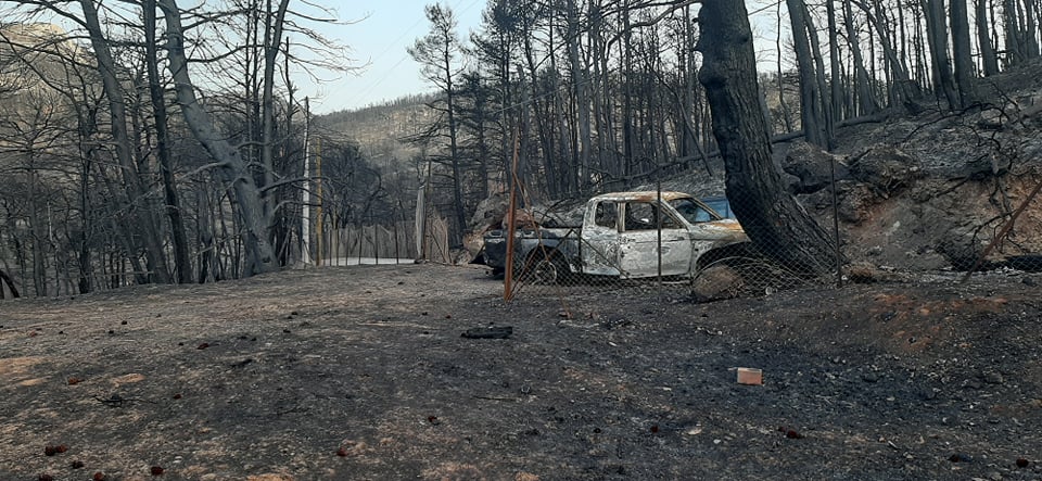 Η κατάσταση ήταν τραγική. Παρότι ήταν πολύ έμπειροι και έτρεχαν με το 4χ4 δε μπορούσαν να ξεφύγουν. Ηταν σαν να βρίσκονταν μέσα σε ένα τεράστιο τζάκι. Το θερμικό κύμα είχε αρχίσει να τους καίει. Η φωτιά τους έκλεισε το δρόμο... Η ορατότητα ήταν μηδενική... και η λαμαρίνα του αυτοκινήτου έλιωνε.