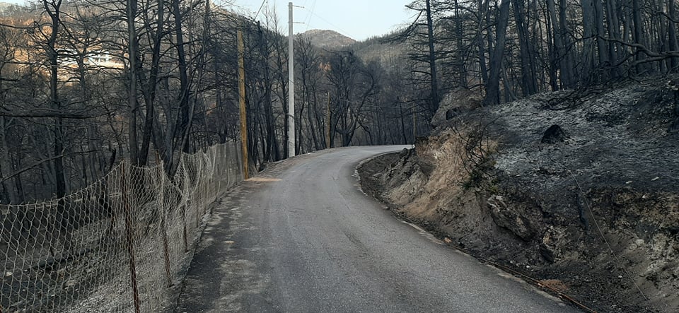 Η φωτιά όμως είχε τρέξει από διαφορετικά μέτωπα και τους "κυνηγούσε" με ταχύτητα. Πάνω από τα αιωνόβια πεύκα είχαν σηκωθεί φλόγες δεκάδων μέτρων και ο δρόμος ήταν όλος χωμένος μέσα στο δάσος. Έμοιαζε ατελείωτος... Κάθε στροφή ήταν μία μεγάλη καθυστέρηση καθώς οι φλόγες κατάπιναν τα πάντα.