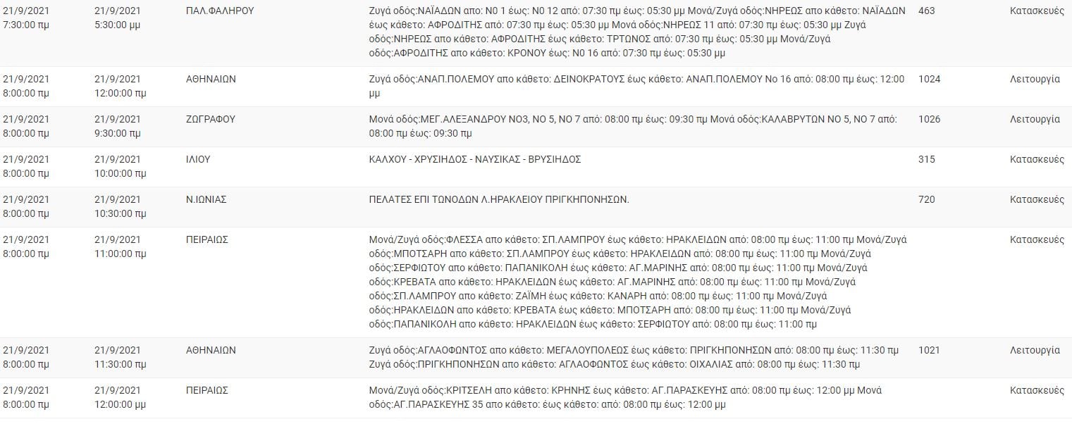 Διακοπή ρεύματος έχει προγραμματίσει για σήμερα, Τρίτη 21 Σεπτεμβρίου, ο ΔΕΔΔΗΕ, σε αρκετές περιοχές της Αττικής, στις οποίες περιλαμβάνονται η Αθήνα, ο Πειραιάς, το Γαλάτσι και το Ίλιον.