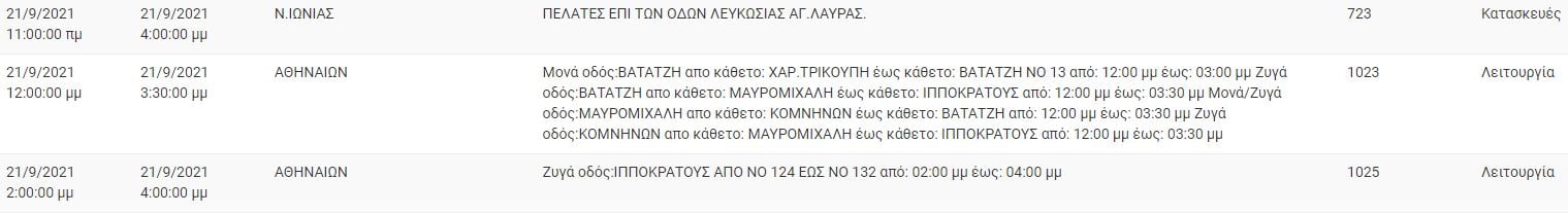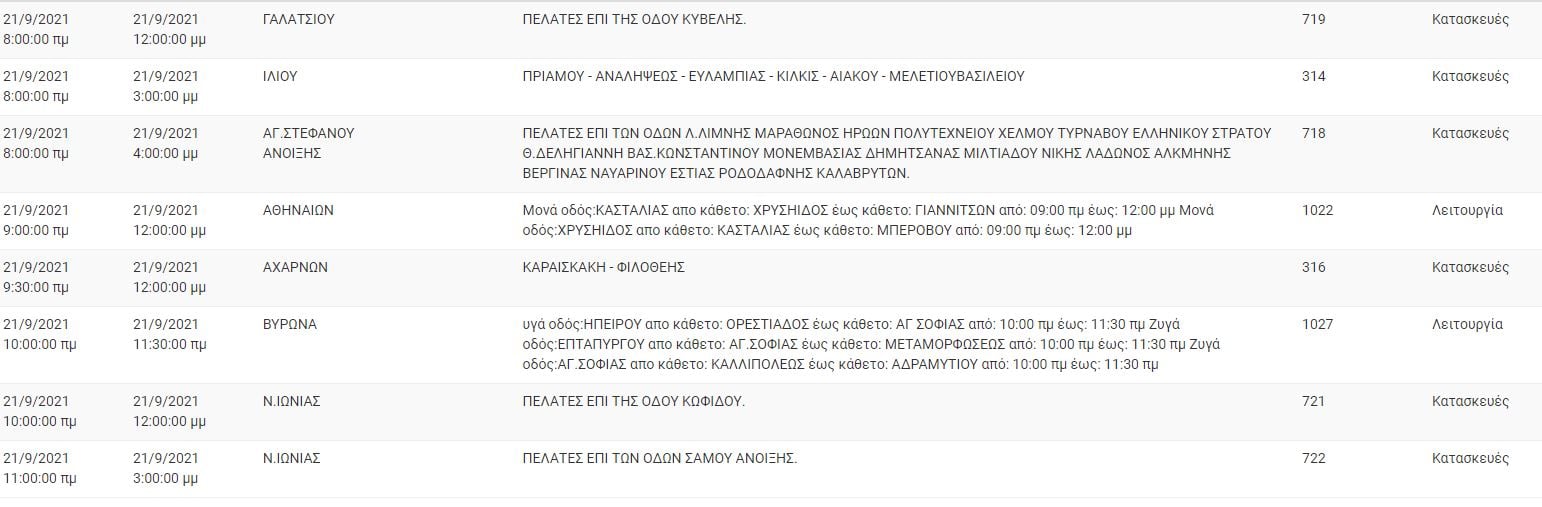 Αναλυτικά οι πίνακες με τις περιοχές της Αττικής και τις ώρες που θα σημειωθεί διακοπή ρεύματος: