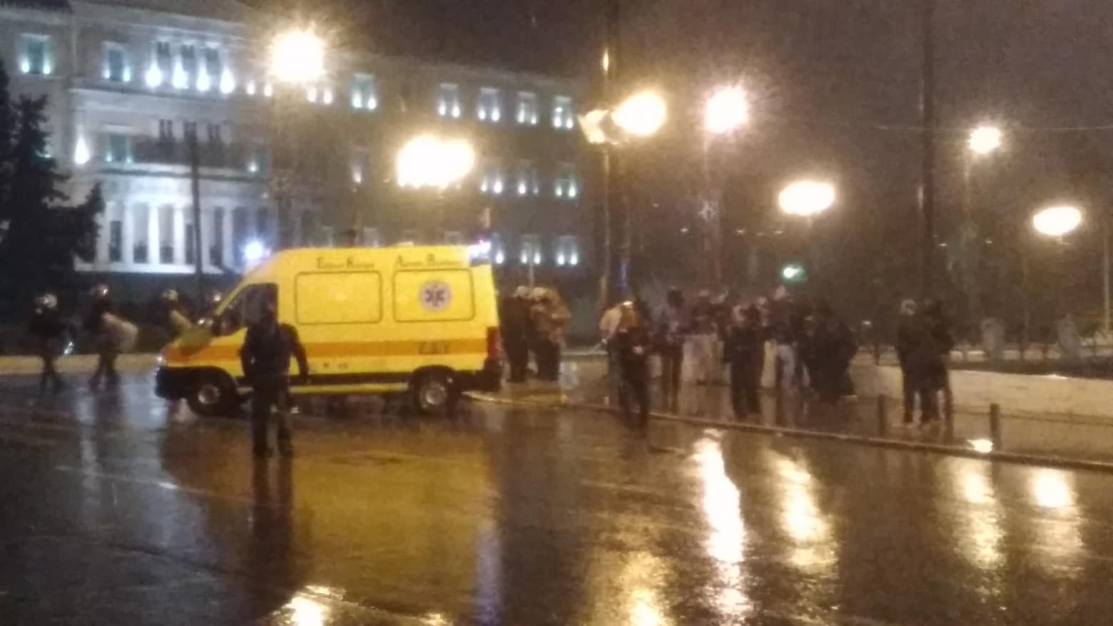 Ακόμη, λιποθύμησε μία κοπέλα στο Σύνταγμα και έσπευσε ασθενοφόρο του ΕΚΑΒ για τις πρώτες βοήθειες.