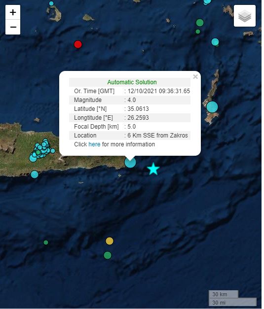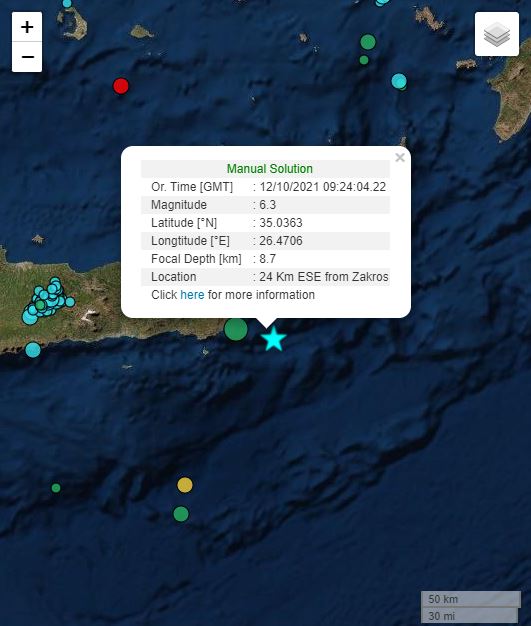 Tο επίκεντρο του κύριου σεισμού των 6,3 Ρίχτερ, σύμφωνα με το Γεωδυναμικό Ινστιτούτο, εντοπίζεται στο θαλάσσιο χώρο, 24 χιλιόμετρα Νότια-Νοτιοανατολικά της Ζάκρου, στο Νομό Λασιθίου. Το εστιακό βάθος καταγράφεται στα 8,7 χιλιόμετρα. Σημειώνεται ότι η προηγούμενη εκτίμηση του Γεωδυναμικού Ινστιτούτου έκανε λόγο για σεισμική δόνηση μεγέθους 6,2 της κλίμακας Ρίχτερ.