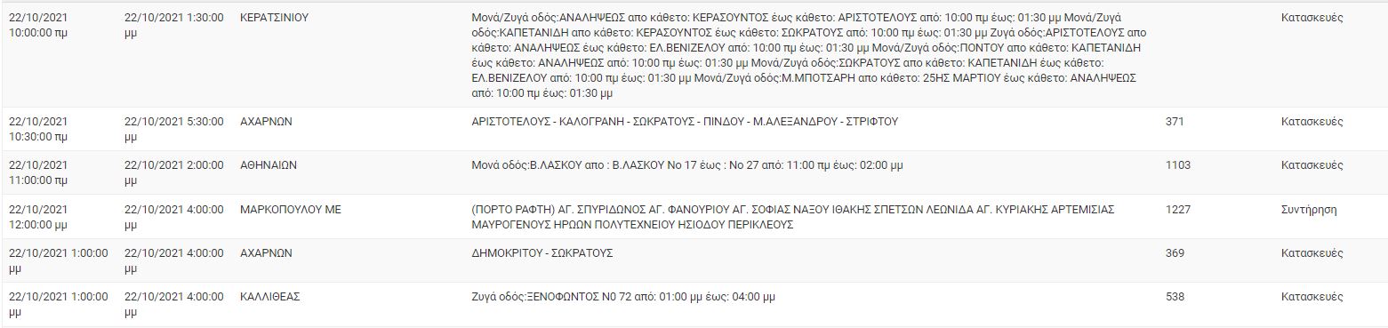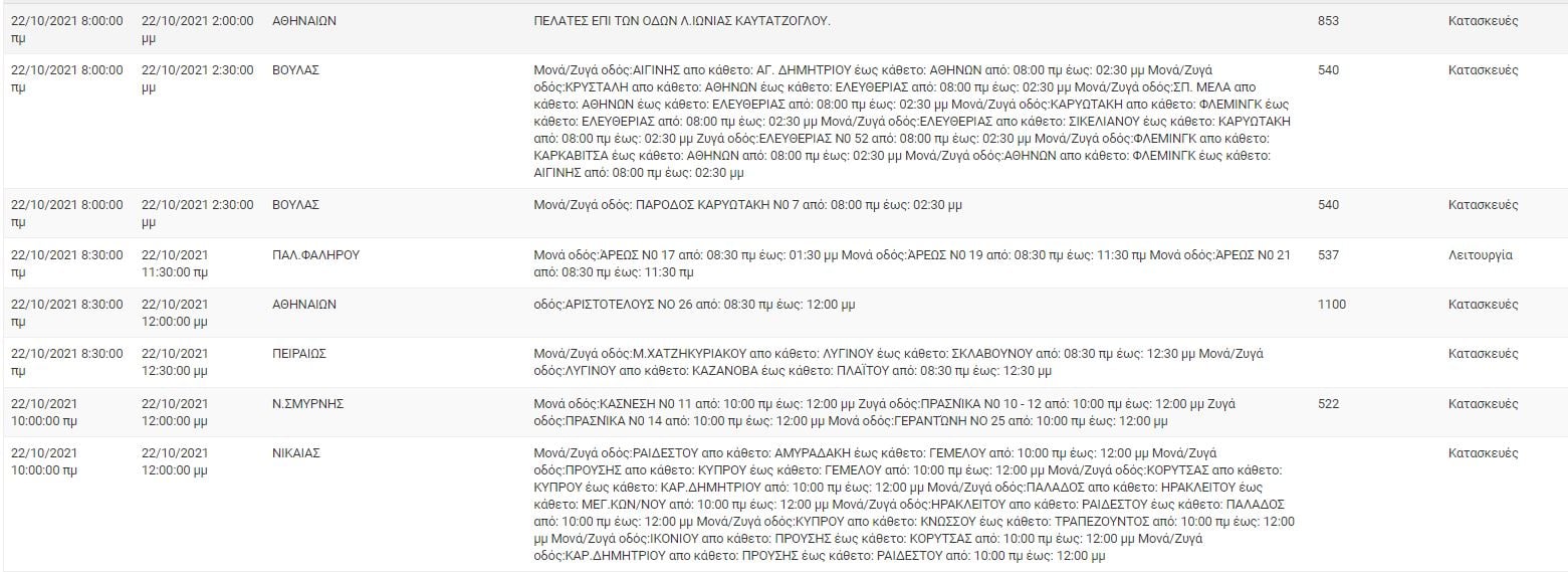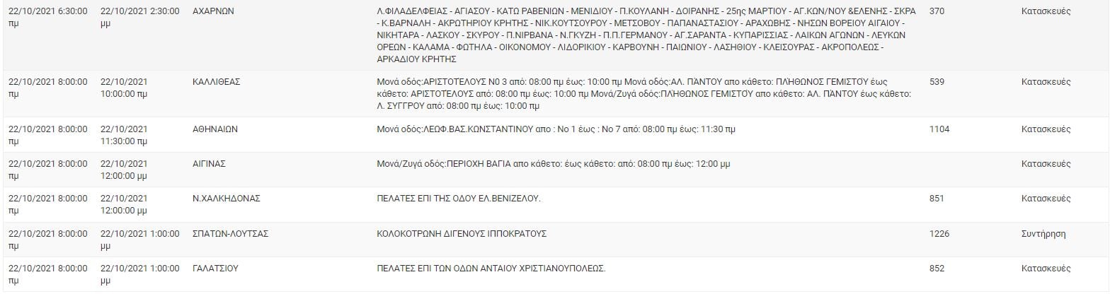 Αναλυτικά οι πίνακες με τις περιοχές της Αττικής και τις ώρες που θα σημειωθεί διακοπή ρεύματος: