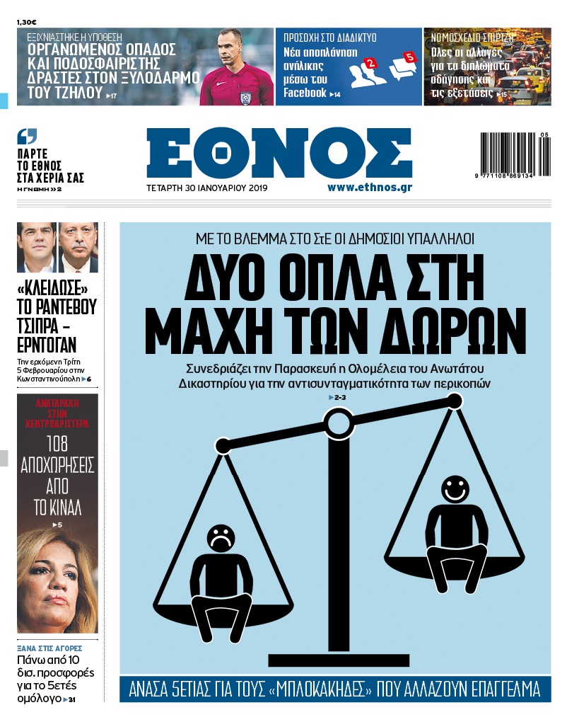 Διαβάστε στο «Έθνος» που κυκλοφορεί την Τετάρτη 30/1/2019
