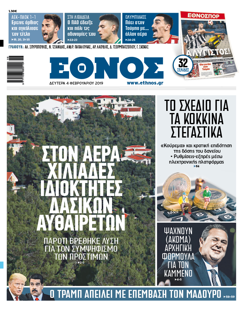Διαβάστε στο ΕΘΝΟΣ που κυκλοφορεί τη Δευτέρα 4/2/2019