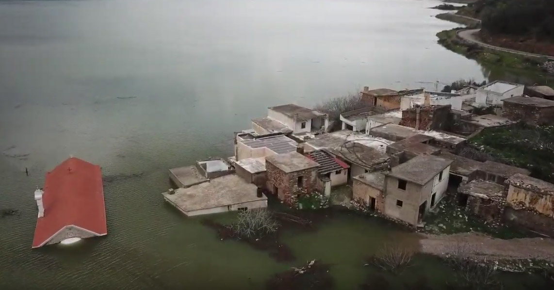 Με σταθερό ρυθμό ολόκληρο το χωριό Σφεντύλι βυθίζεται κάτω από τις τεράστιες ποσότητες νερού που έχουν αποθηκευτεί στον ταμιευτήρα του φράγματος. Με τη χρήση drone ο Μανώλης Χαμηλάκης κατέγραψε σε βίντεο τα μισοβυθισμένα σπίτια του χωριού και τα λιγοστά που διακρίνονται ακόμη πάνω από τη στάθμη του νερού. Η είδηση για την ποσότητα στα φράγματα του νησιού μόνο χαμόγελα και αισιοδοξία μπορεί να σκορπίσει στους Κρητικούς μετά τη λειψυδρία του 2018.