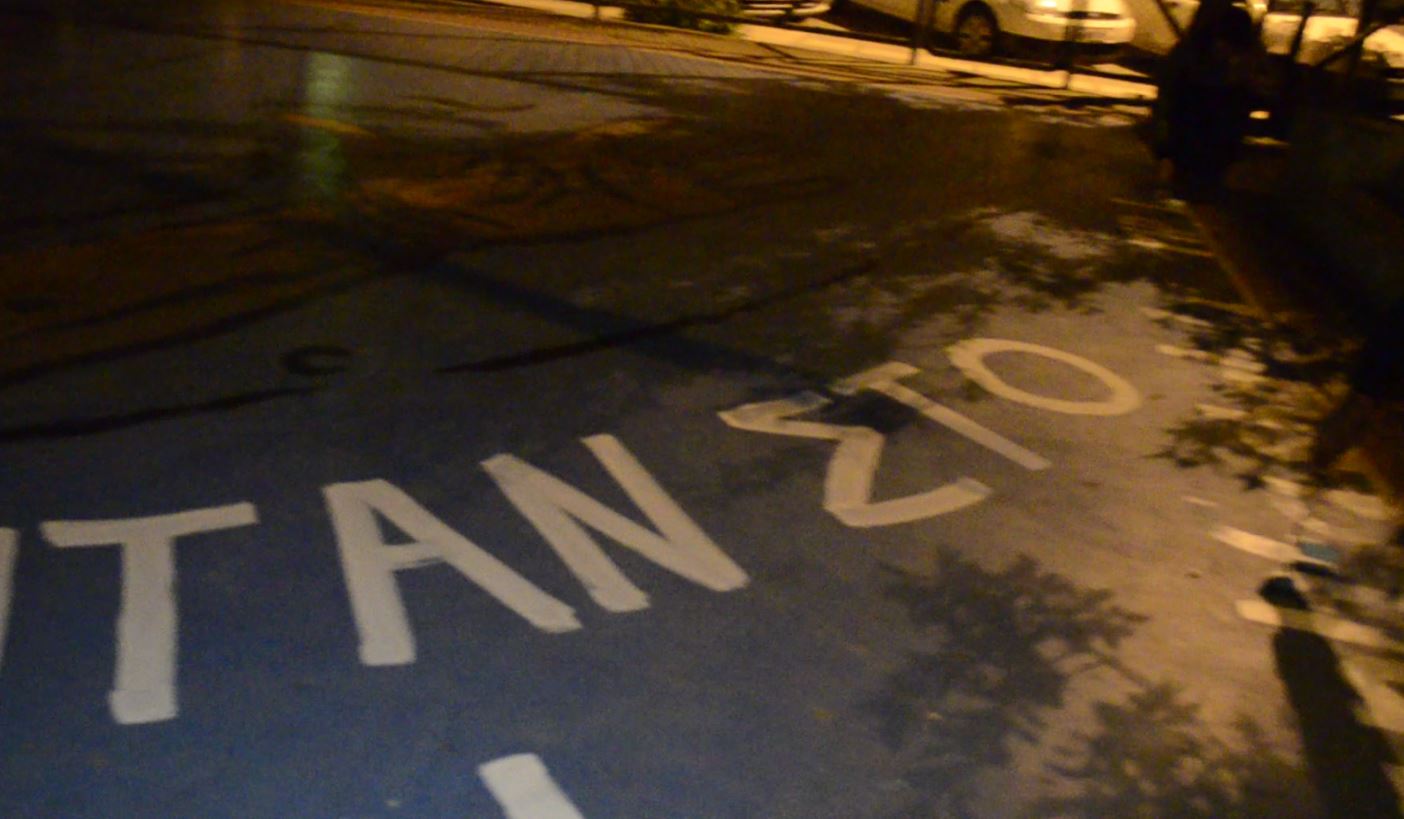 Δίπλα στην επιβλητική μορφή του Giannis, ο οποίος καρφώνει με τη φανέλα των Μιλγουόκι Μπακς, σε ένα καταπληκτικό γκράφιτι που φιλοτεχνήθηκε τον Φεβρουάριο του 2017, γράφτηκε με μπογιά το εν λόγω μήνυμα από μέλη αντιφασιστικής συλλογικότητας, που διαμαρτύρονται και αναζητούν απαντήσεις για τον θάνατο του 34χρονου Νιγηριανού Μανάν Σουμπέκ «Εμπουκά» στο αστυνομικό τμήμα της Ομόνοιας πριν από ένα μήνα.