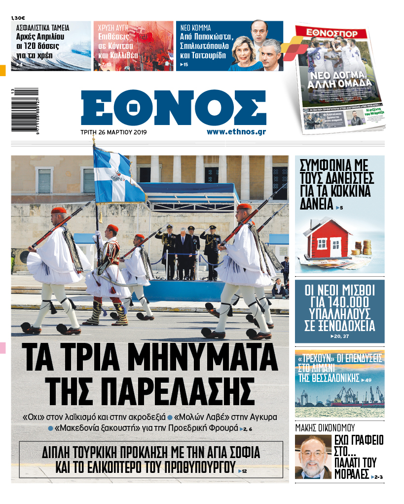 Διαβάστε στο Έθνος που κυκλοφορεί την Τρίτη 26/3/2019