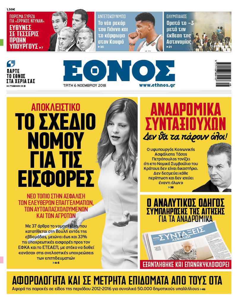 Την Τρίτη (6/11) στο ΕΘΝΟΣ που κυκλοφορεί...🕛 χρόνος ανάγνωσης: 1 λεπτό ┋