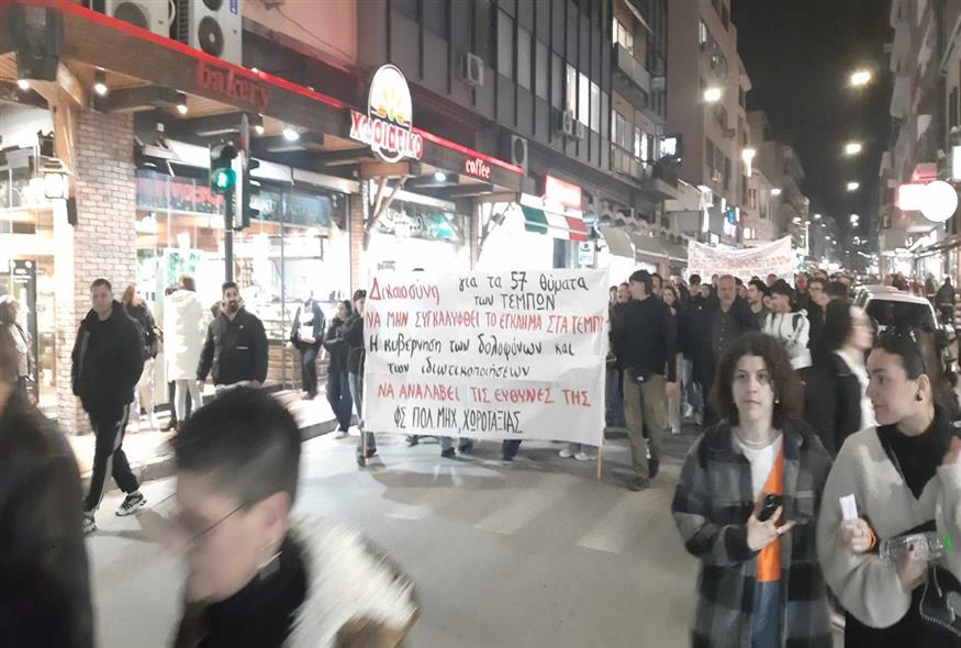 Τέμπη: Εκατοντάδες διαδηλωτές στον Βόλο ζητούν δικαίωση