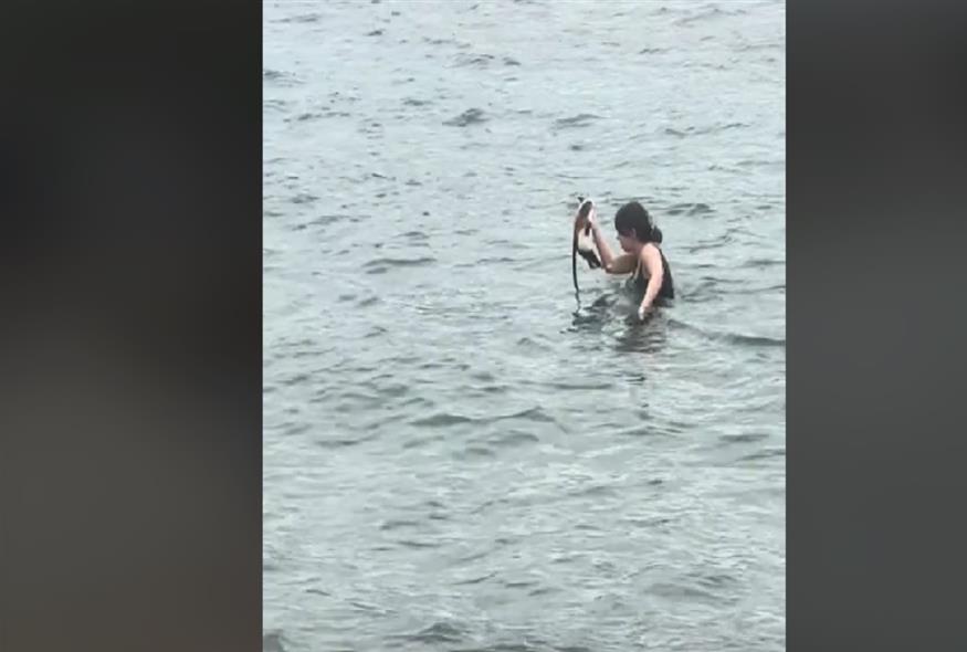 Αυτό θα πει ανθρωπιά: Η συγκινητική στιγμή που κοπέλα βουτάει στη θάλασσα στην Εύβοια για να σώσει γατάκι