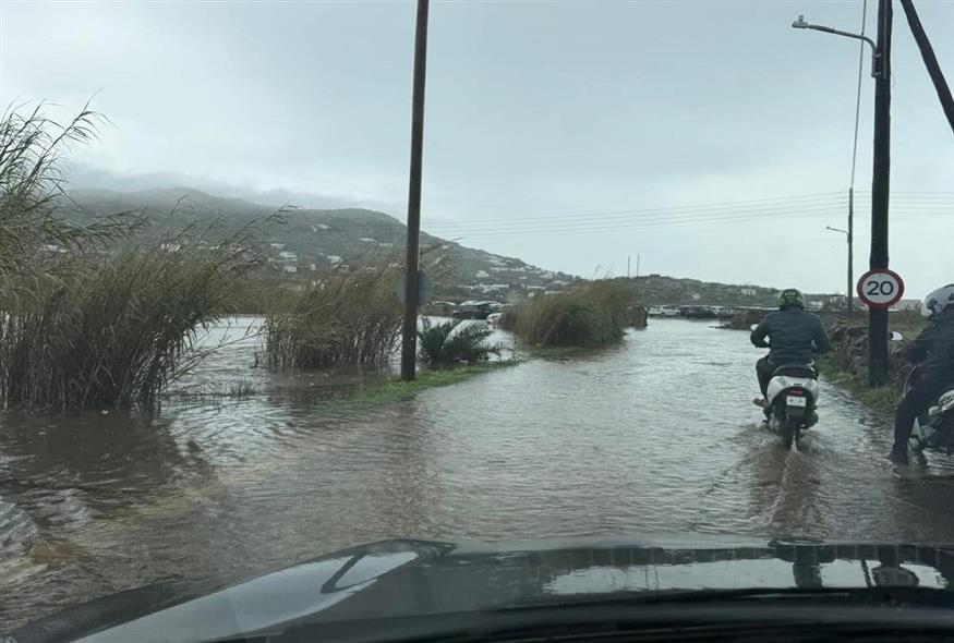 Σαρωτικό είναι το πέρασμα της κακοκαιρίας από τη Μύκονο, με τους δρόμους του νησιού να μετατρέπονται για άλλη μια μέρα σε ποτάμια.