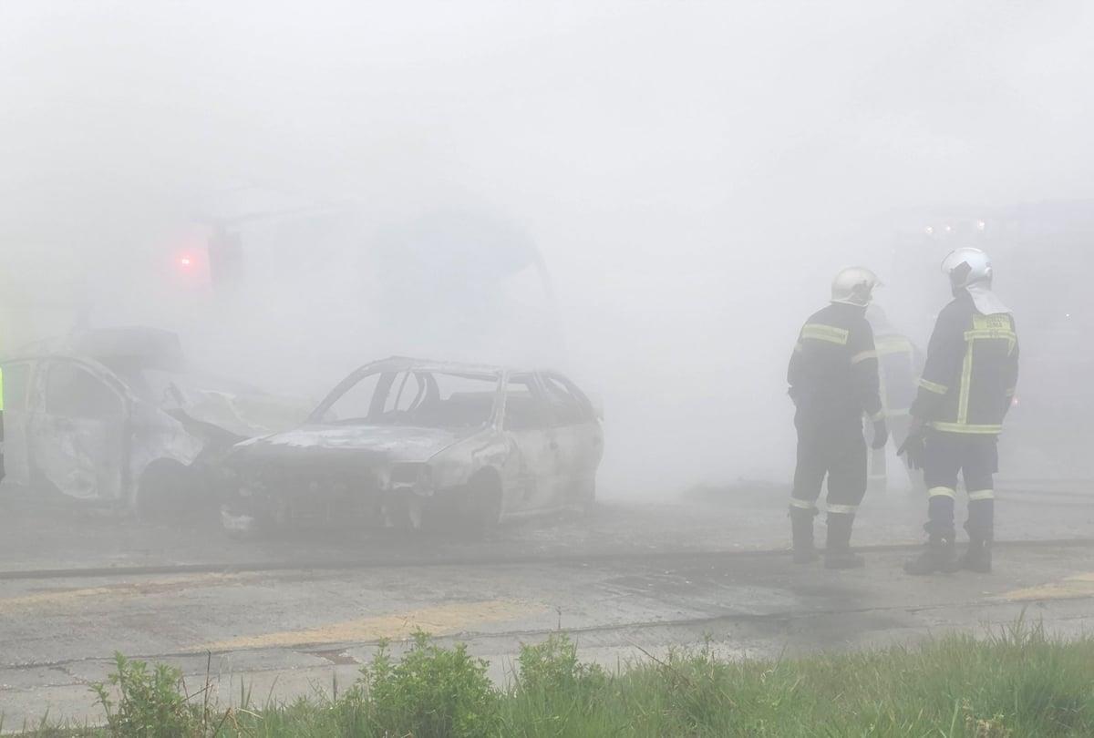 Σύμφωνα με το Mega, βίντεο - ντοκουμέντο δείχνει το ένα αυτοκίνητο που τυλίχθηκε στις φλόγες, με τους δύο ανθρώπους που απανθρακώθηκαν να εικάζεται ότι βρίσκονταν εντός αυτού.