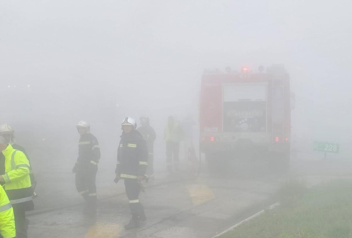 Το τροχαίο έγινε όταν αυτοκίνητο έκανε όπισθεν στα διόδια Πολυμύλου, διότι δεν ανέβαινε η μπάρα με τη χρήση του e-pass. Τότε, ένα άλλο ΙΧ προσέκρουσε πάνω του, λόγω και της πυκνής ομίχλης, ενώ λίγο αργότερα στο τροχαίο ενεπλάκη και φορτηγό, με τα τρία οχήματα να καίγονται ολοσχερώς.