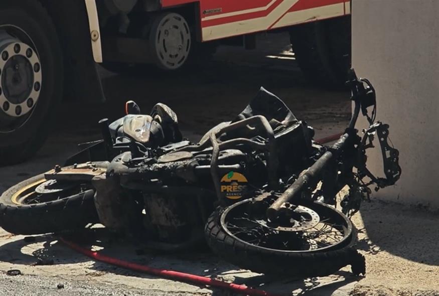 Συναγερμός στη λεωφόρο Ηρακλείου: Φωτιά σε μοτοσικλέτα της ομάδας ΔΙ.ΑΣ