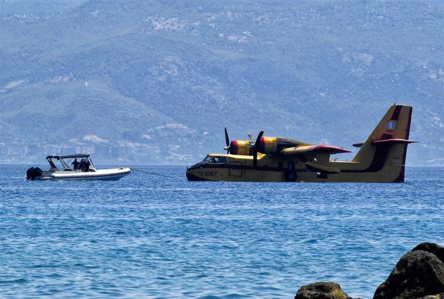 Το αεροπλάνο κατέβηκε κανονικά στη θάλασσα για να γεμίσει νερό τις δεξαμενές του και στη συνέχεια να επιχειρήσει στη φωτιά, αλλά παρουσίασε πρόβλημα και δεν κατάφερε να απογειωθεί.