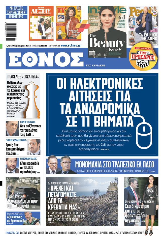 Διαβάστε στο ΕΘΝΟΣ που κυκλοφορεί την Κυριακή 11 Νοεμβρίου
