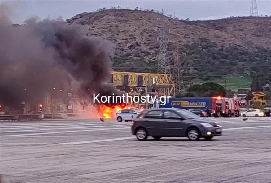 Αναστάτωση σημειώθηκε νωρίτερα σήμερα (22/12) στην Εθνική Οδό Αθηνών-Κορίνθου, όταν ένα αγροτικό όχημα τυλίχθηκε στις φλόγες στον σταθμό διοδίων Καλαμακίου.