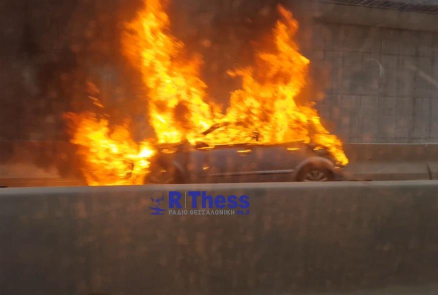 Στις φλόγες ΙΧ στον Περιφερειακό Θεσσαλονίκης - Σοκαριστικές εικόνες από το σημείο
