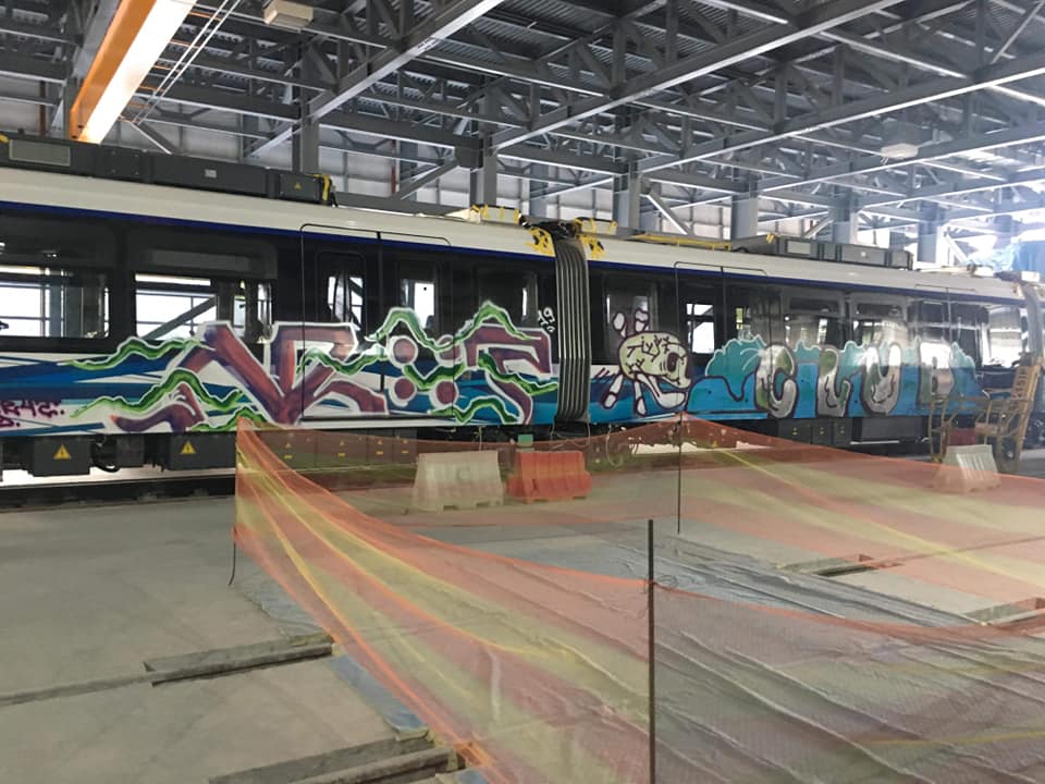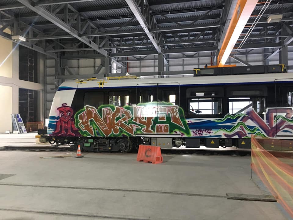 Δεν συμπληρώθηκαν τρεις μέρες από την άφιξη των πρώτων βαγονιών του μετρό Θεσσαλονίκης και άγνωστοι γέμισαν με συνθήματα και γκράφιτι τον συρμό του μετρό Θεσσαλονίκης, στο Αμαξοστάσιο της Πυλαίας. Άγνωστοι κατάφεραν και μπήκαν στο αμαξοστάσιο και ζωγράφισαν γκράφιτι και έγραψαν συνθήματα στα βαγόνια.