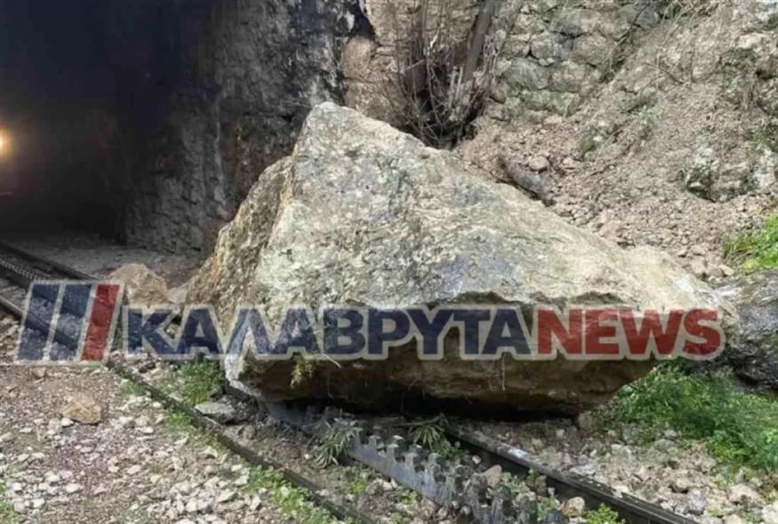 Σύμφωνα με το kalavrytanews, έπεσαν βράχια στις γραμμές, με αποτέλεσμα να μην είναι δυνατή η διέλευση του τρένου.