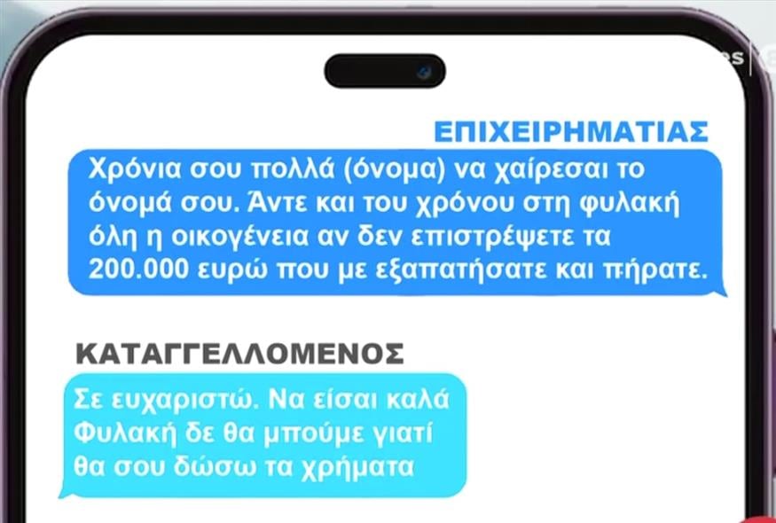 Επιχειρηματίας: «Χρόνια σου πολλά. Να χαίρεσαι το όνομά σου. Άντε και του χρόνου στη φυλακή όλη η οικογένεια αν δεν επιστρέψετε τα 200.000 ευρώ που με εξαπατήσατε και πήρατε.