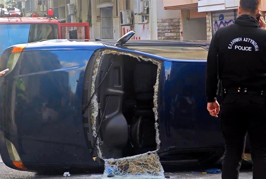 Τροχαίο-σοκ στην Κυψέλη: Αναποδογύρισε αυτοκίνητο στη μέση του δρόμου