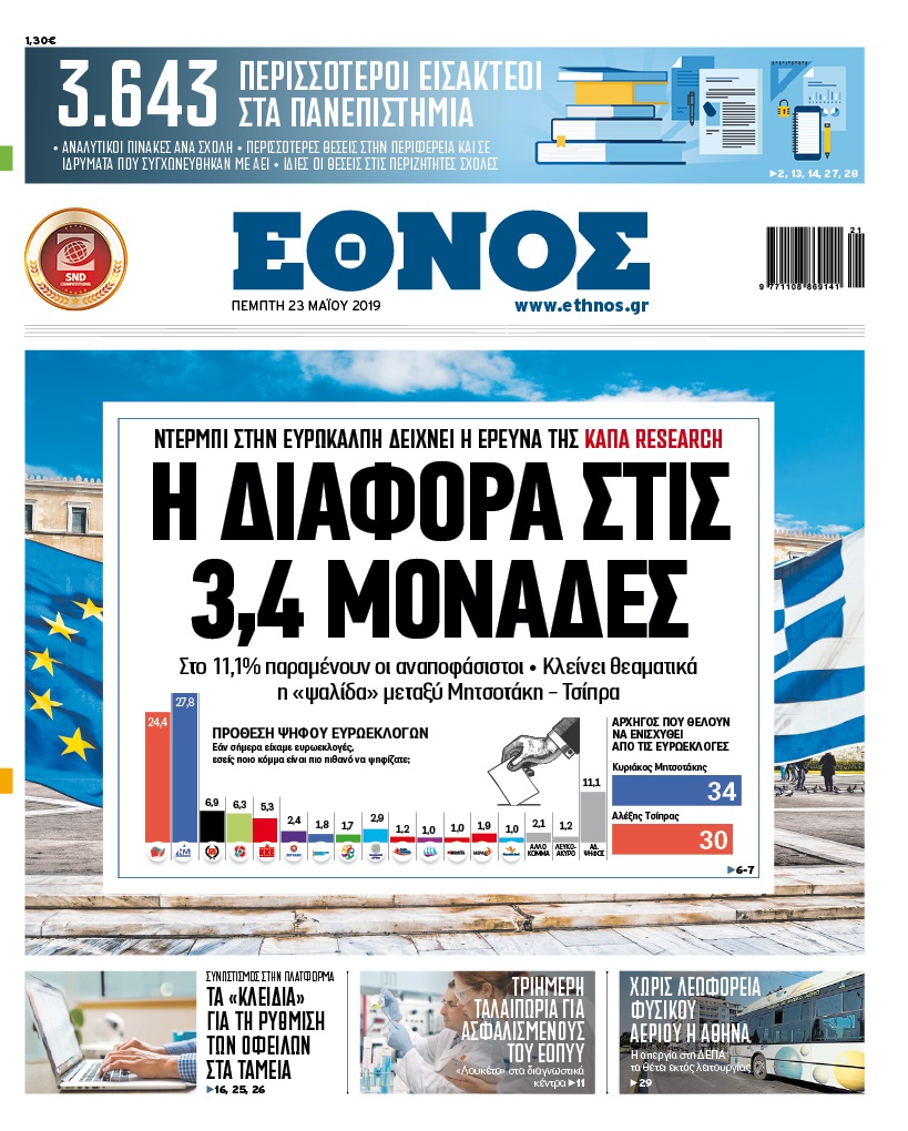 Διαβάστε στο Έθνος που κυκλοφορεί την Πέμπτη 23/5/2019