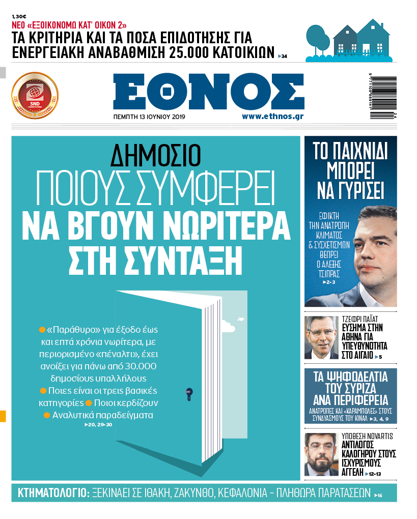 Διαβάστε στο Έθνος που κυκλοφορεί την Πέμπτη 13/6/2019