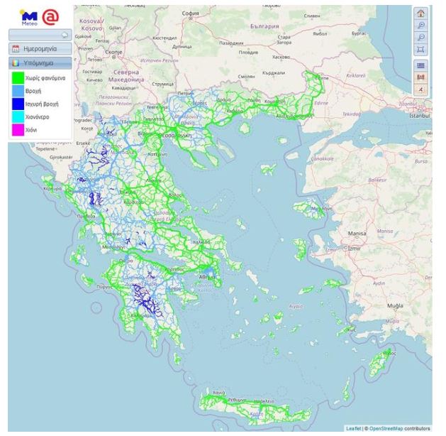 Καταιγίδες κατά τη διάρκεια της Δευτέρας θα σημειωθούν τόσο στο νομό όσο και στην πόλη της Θεσσαλονίκης. Στο χάρτη που ακολουθεί, παρουσιάζονται οι συνθήκες που αναμένεται να επικρατήσουν στο οδικό δίκτυο τις απογευματινές ώρες της Δευτέρας.
