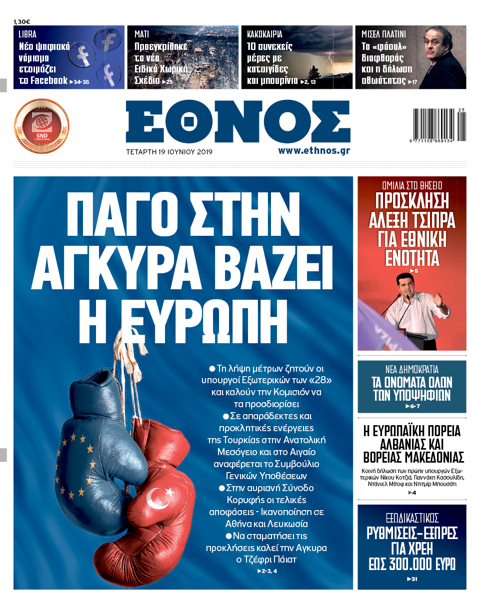 Διαβάστε στο Έθνος που κυκλοφορεί την Τετάρτη 19/6/2019