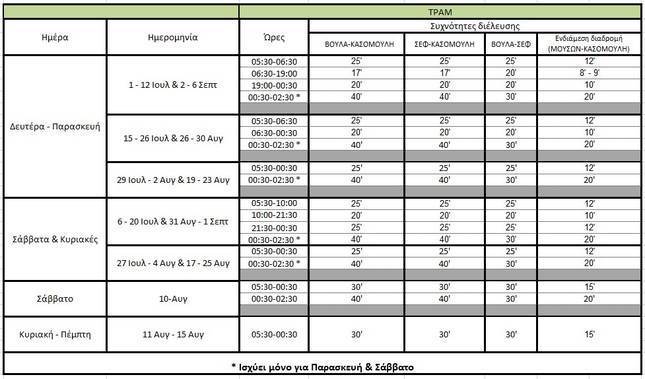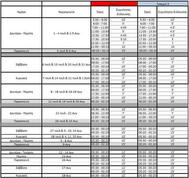 Από 22 Ιουλίου έως και Τετάρτη 14 Αυγούστου: Δρομολόγια ανά 10,5′ τις καθημερινές και ανά 12,5′ τα Σαββατοκύριακα